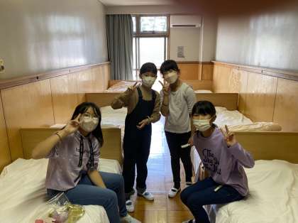 ベッドメイキングをして、カレー作りまで部屋で楽しく過ごしています。