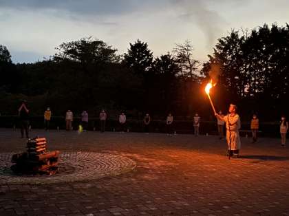 すっかり暗くなりキャンプファイヤーのはじまりです。