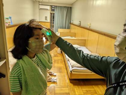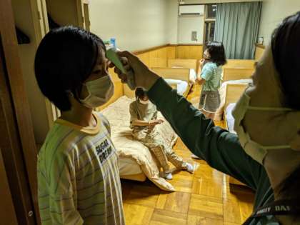 入浴後に落ち着いた後、検温をします。体調不良の子はいません。