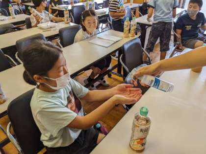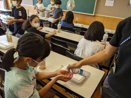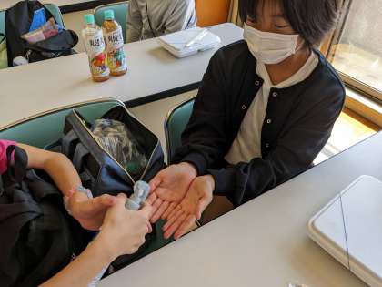 お弁当タイム!その前に手洗いと手指消毒をします。