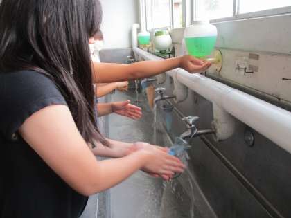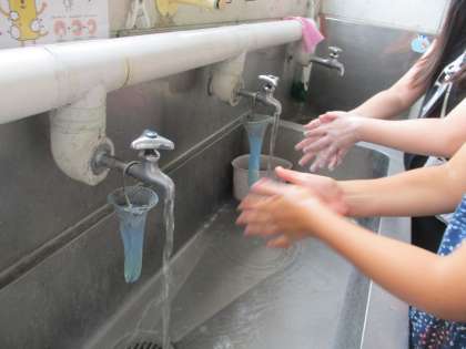 朝の手洗いの様子です。 きれいに手を洗うことができました。