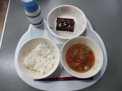 【献立】 ごはん ぎゅうにゅう のっぺいじる きぬあつあげのあまみそがけ