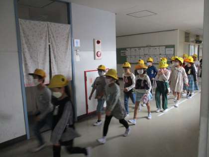 運動場へ避難します。