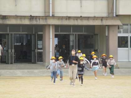 地震が起きて、家庭科室から出火したという想定で避難訓練をしました。