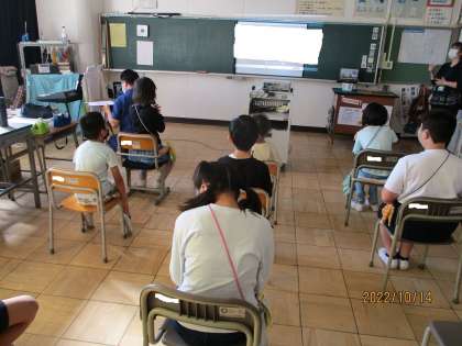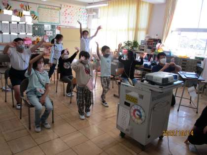 10月24日の萩原中学校区3校の交流会に先駆けて、5時間目に本校なかよし学級と萩原小学校特別支援学級とのオンライン交流を行いました。初めての試みで音声が聞きづらくなる場面もありましたが、自己紹介や質問コーナー、しりとりなどを行い、学校間の交流の第一歩となりました。