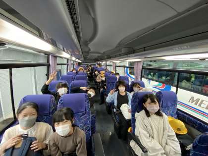 修学旅行に行ってきます! バスの中の様子です。 みんなわくわくしています。