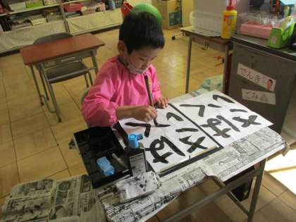 12月の掲示用に、冬野菜の名前を書きます。