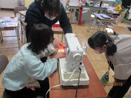 なかよし学級の6年生は、家庭科でティッシュボックスカバーを作っています。今日はミシンを使いました。慎重に、ていねいに、作業を進めていました。すてきな作品ができあがるといいですね。