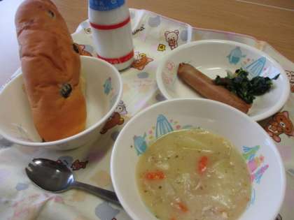 2・14(火) 今日の給食 公開日 2023/02/14 更新日 2023/02/14 給食・食育 【献立】 レーズンロールパン 牛乳 ホワイトシチュー やきフランクフルト ひじきとほうれん草のごまドレサラダ