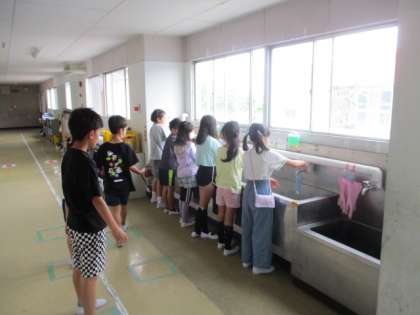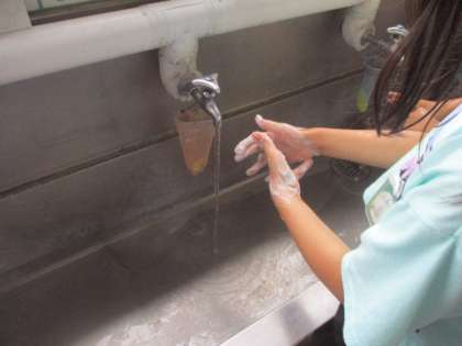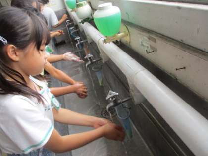 全校一斉の手洗いタイム。
