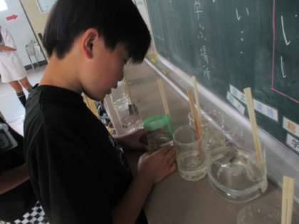 また、モンシロチョウの幼虫がさなぎになっていました。