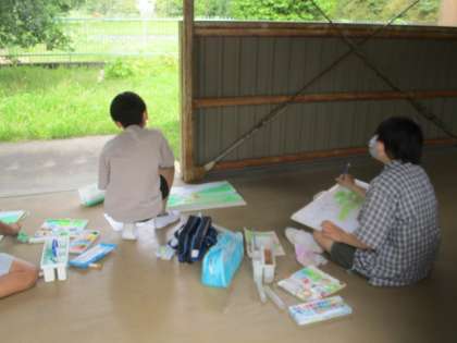 写生会の絵。 丁寧に色付けをします。