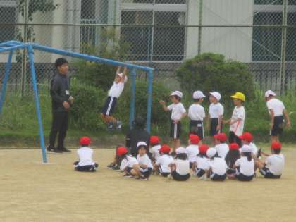 6・6(火) 1ねん2くみ たいいく 公開日 2023/06/06 更新日 2023/06/06 1年生 てつぼう遊び 雲梯でどれだけ渡れるかな? しっかり握っていれば大丈夫。できなさそうでもチャレンジだよ。