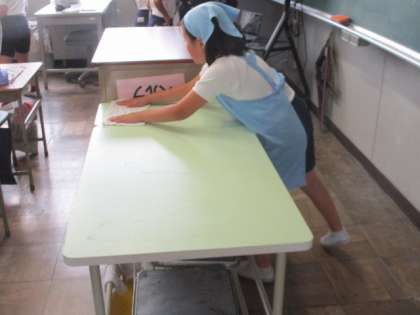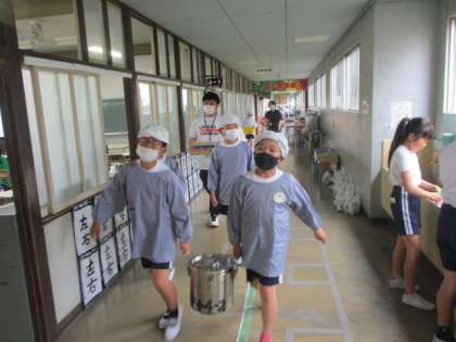 4年2組の様子。 当番さんが協力して準備です。
