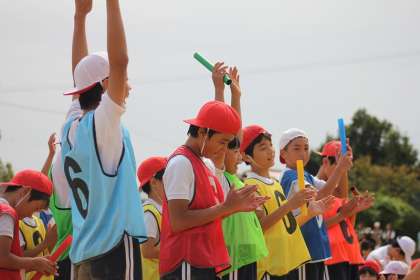 運動会最後の種目。全員が全力で走ります。