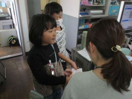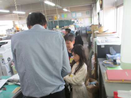 おもちゃフェスティバルの招待状を校長先生や職員室で働いている先生方に渡しに行きました。