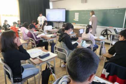 ALTの先生と一緒に、単語の発音をしています。