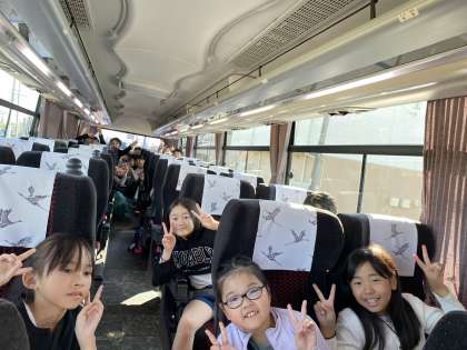バスに乗り込み出発しました! 元気に行ってきまーす!