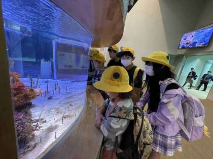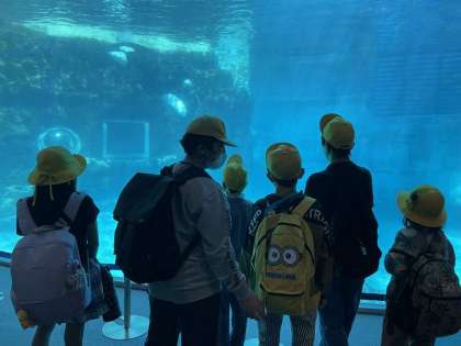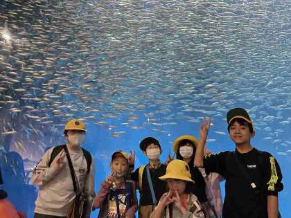 水族館では、大きな水槽の中をたくさんの魚が泳いでいるところを見ることができました。