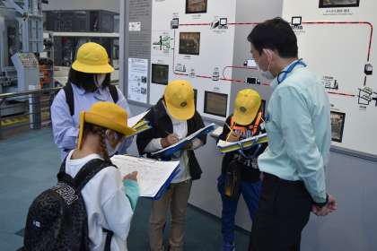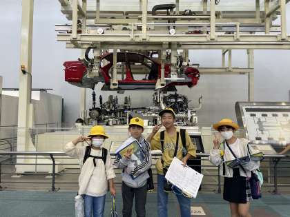 自動車館では、自動車工業の生産ラインを見学しました。ボタンを押して装置を動かしてみたり、職員の方にインタビューをしたりして、楽しみながら学びを深めることができました。