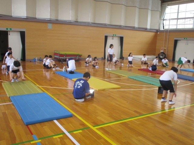 5年生 体育 9/10 公開日 2025/09/10 更新日 2025/09/10 5年生の部屋 体育の授業では、マット運動に取り組みました。クロームブックを用いて動画を撮り自分のフォームの確認をしていました。