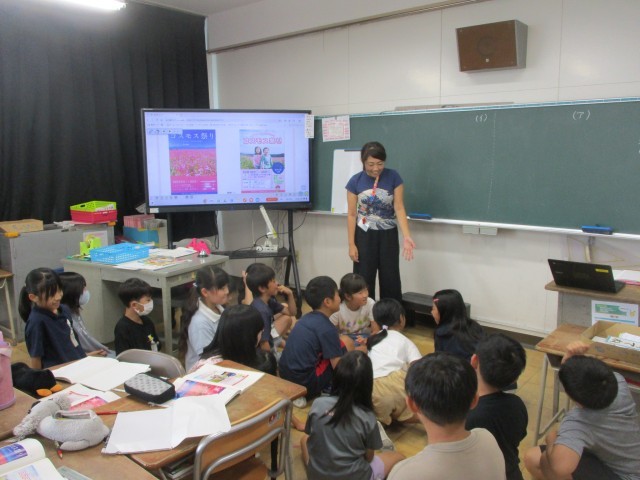 3年生の国語の授業の様子です。2つのポスターを比べて、どちらがその場所へ行きたくなるかと、その理由も考えました。