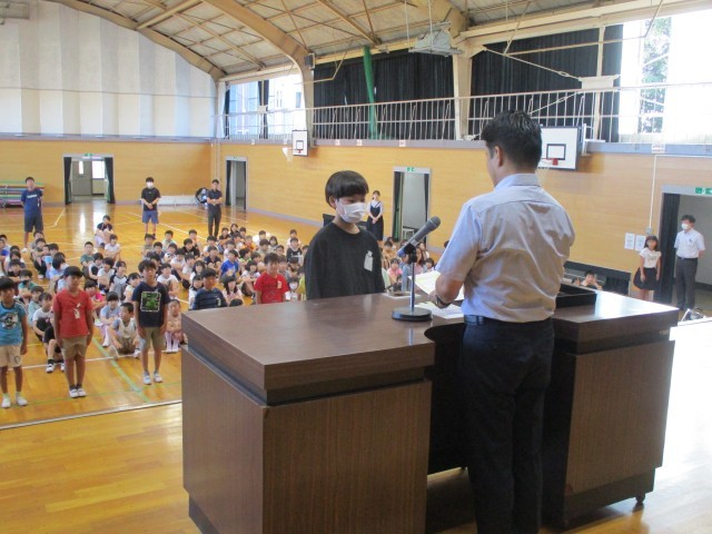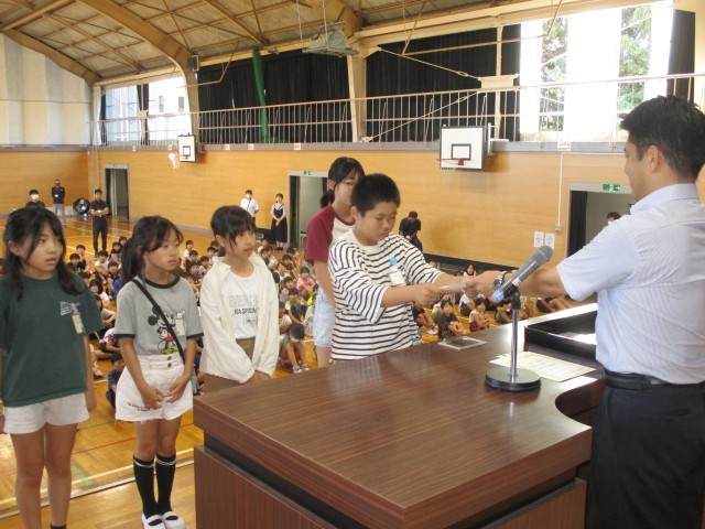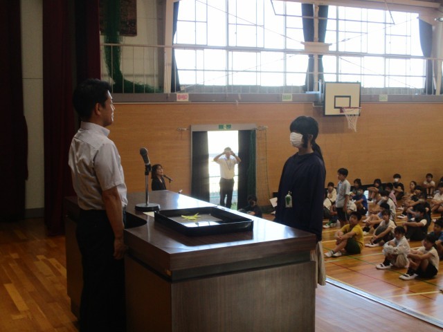 後期の児童会役員、学級委員、代議員、委員長の任命式を行いました。この半年のみなさんの活躍を期待しています。