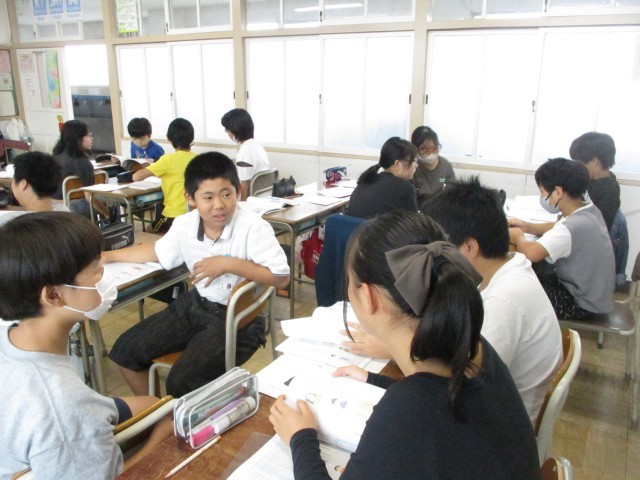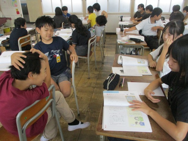 6年生の道徳の授業の様子です。「協力すること」について、班で話し合っています。