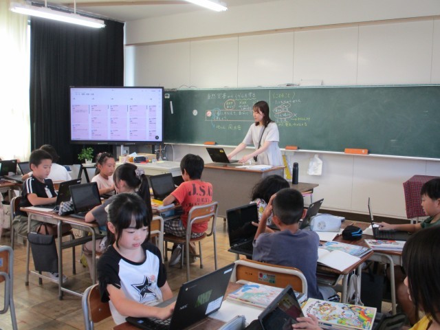 4年2組の算数では、元の何倍になるかについて、子どもたちが意見を言いながら授業を進めていました。