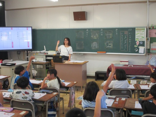 書写の時間では、「とめ、はね、はらい」に気を付けて字を書く練習に取り組みました。