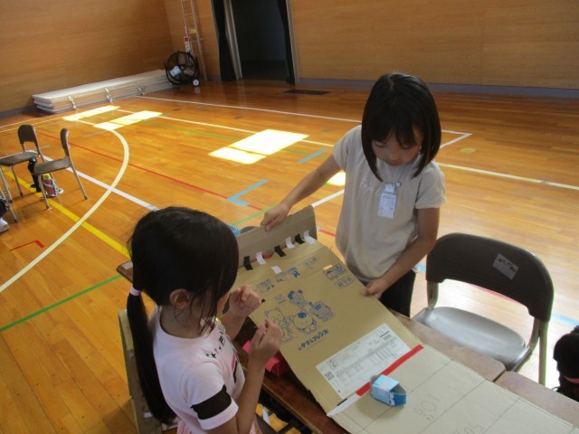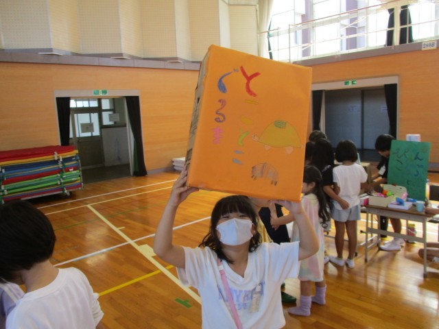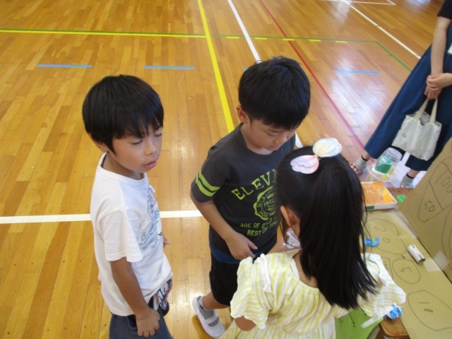 2時間目と3時間目に1年生とおうちの方を招待して、おもちゃまつりを開催しました。準備をしているときは、「緊張する。」「早く来ないかな。」などそわそわしている様子でしたが、お店役として1年生に上手に遊びの説明をすることができました。1年生も真剣に話を聞いて、楽しく遊ぶことができました。