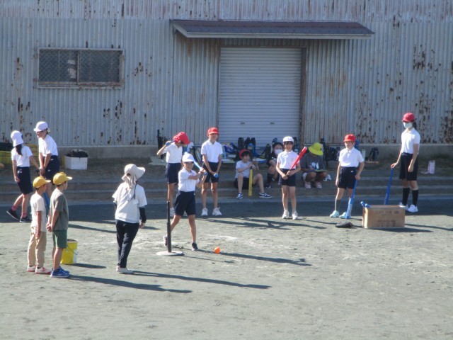 体育では「ティーボール」の練習をしています。簡単に見えて、なかなかボールにバットが当たらず、苦労する姿も...。頑張って練習をして、早くゲームができるといいですね。