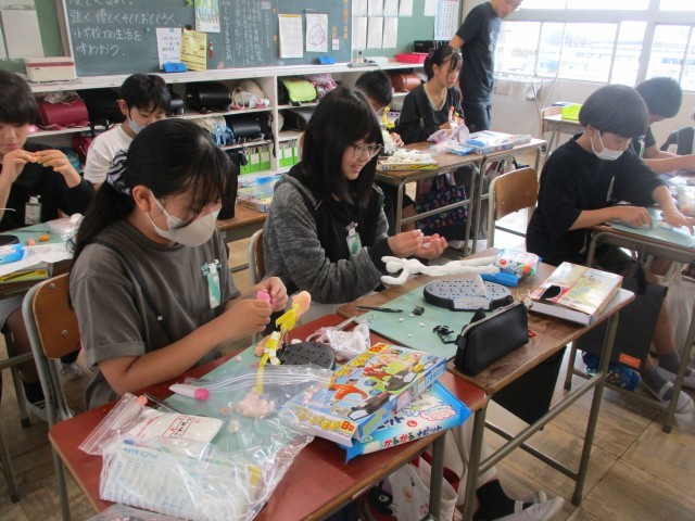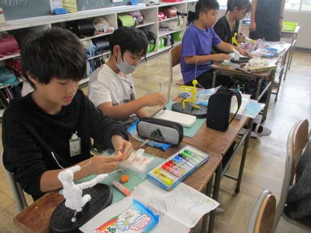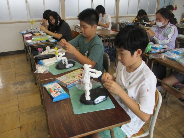 6年生の図工の授業の様子です。紙粘土を使って、どこから作っていくと上手に仕上がるかを考えながら、作成しています。