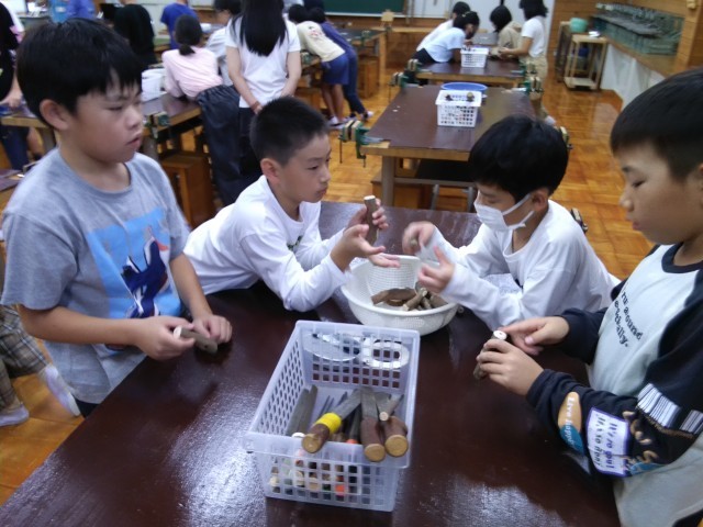 午後の活動スタートです。クラフト活動で、小枝スプーンづくりに挑戦!まずは、柄の部分の木選びです。