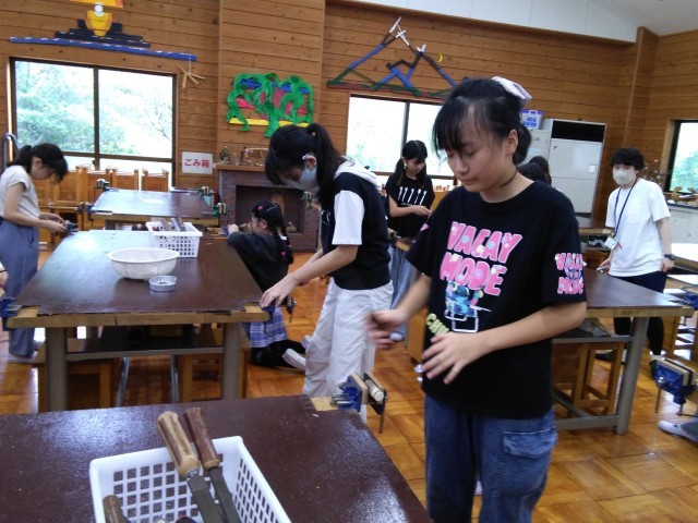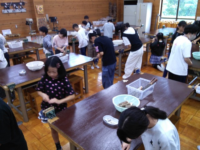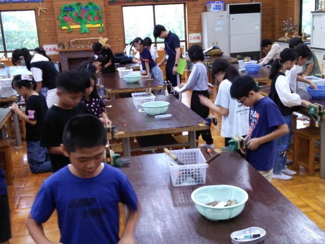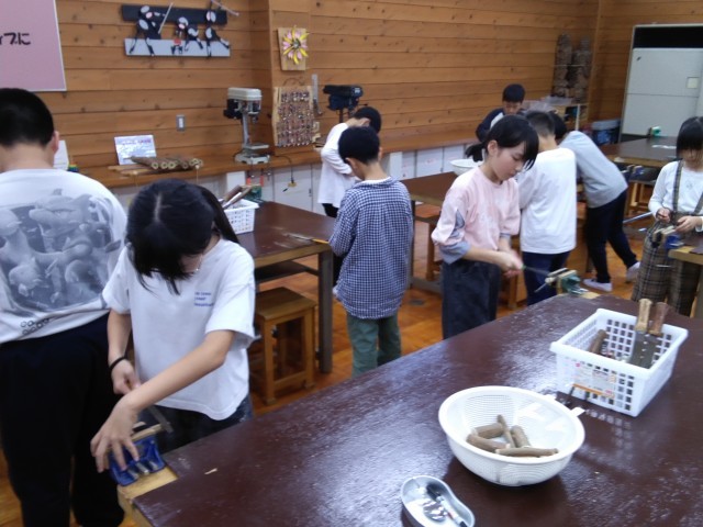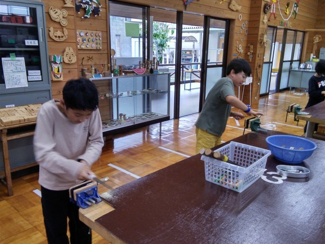 平やすり、かまぼこやすり、棒やすりを使い分けて木を削り、素敵なデザインを作っています。