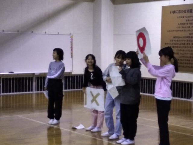 1組のスタンツです。○✕クイズで、大盛り上がり!