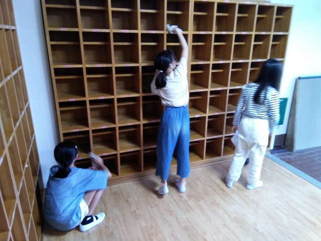 掃除の時間です。学校での掃除と同じように黙働を意識し、感謝の気持ちを込めて、隅々まできれいにしました。