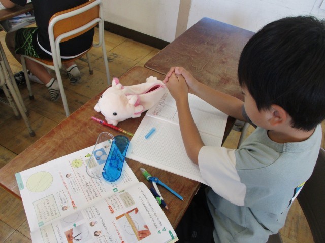3年生の算数の授業の様子です。コンパスを使って円をかく練習をし、半径と円の関係を考えました。