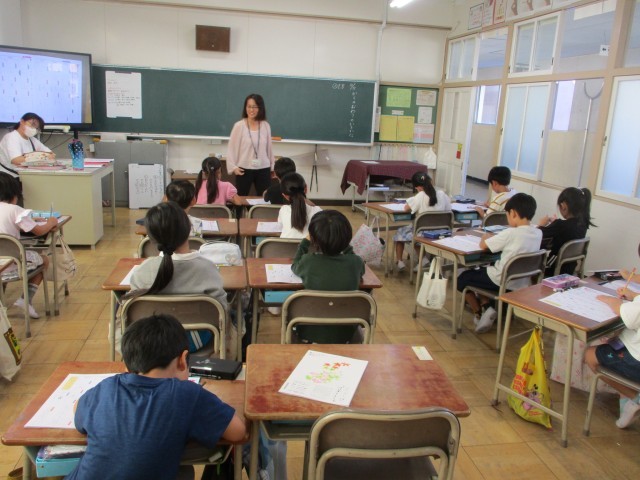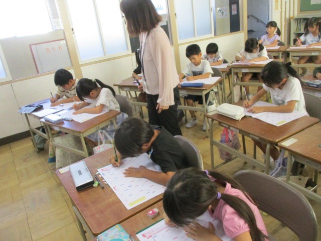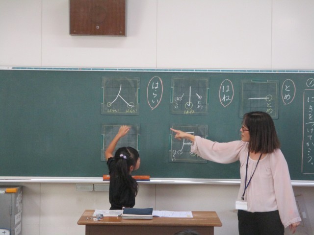 1年生の書写の授業の様子です。「とめ」「はね」「はらい」に気をつけて、漢字をていねいに書きました。