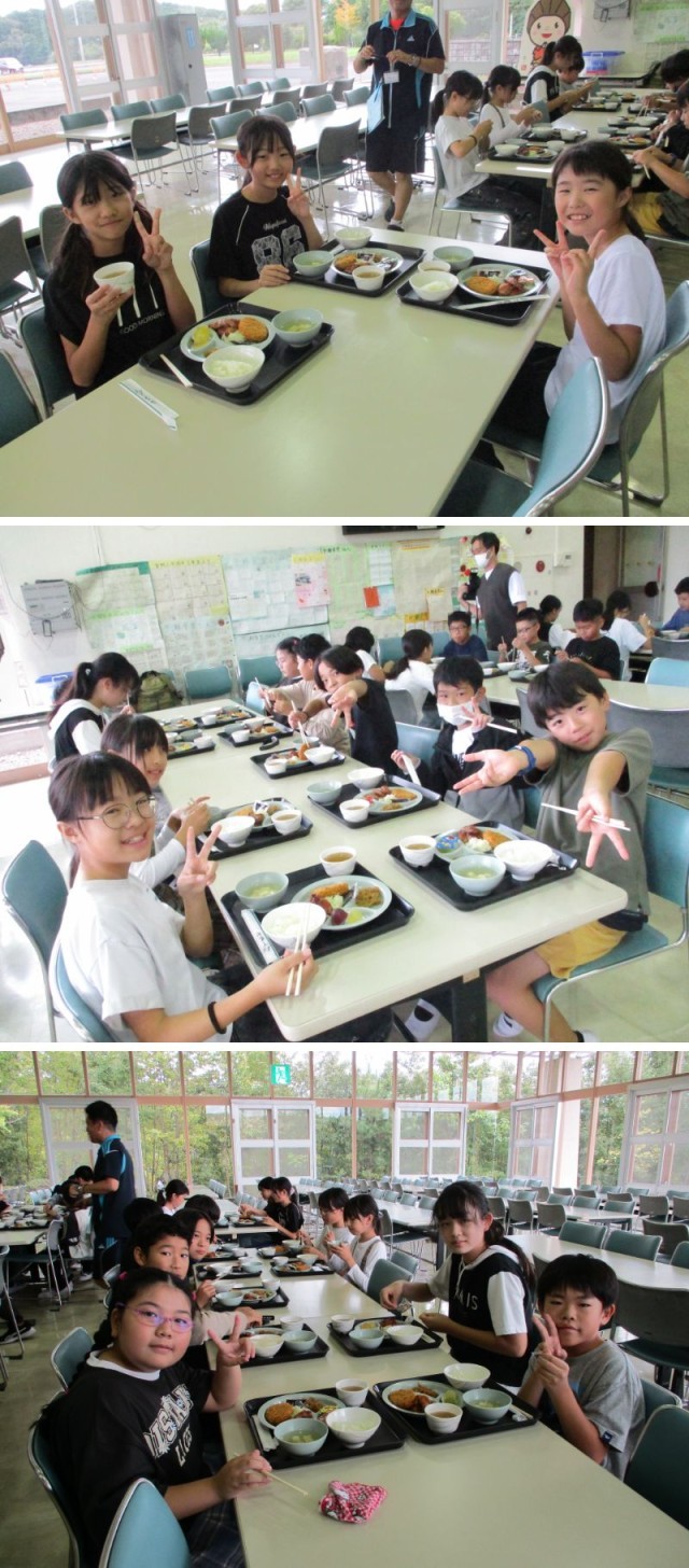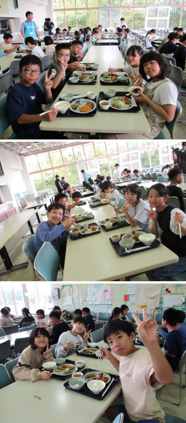 入所式を終えると、早くも「お腹減った~」という声が。食堂に移動して、ランチタイムです。おかわりもたくさんして、お腹いっぱいになりました。
