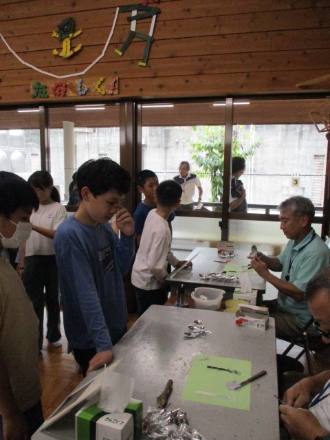 木を削り終えた子は、講師の先生にスプーンの接着をしていただきました。