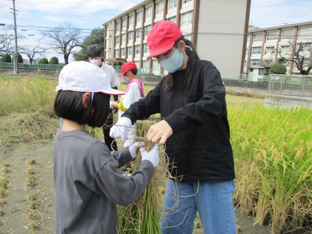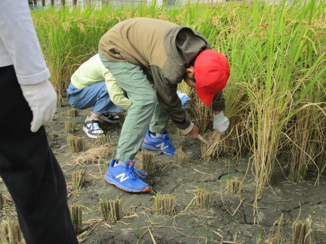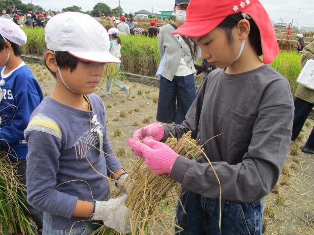 3年生とペアで稲刈り大会を行いました。去年に比べて、鎌を上手に使いスムーズに稲を刈ることができました。ペアの子に声を掛け合いながら稲の束をしっかりと結ぶことができました。ボランティアとして手伝ってくださった保護者の皆様、参観してくださった保護者の皆様、本当にありがとうございました。