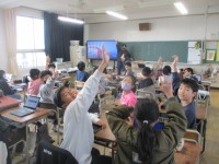 5年生の書写の授業の様子です。漢字とひらがなの大きさに気を付けて書きました。
