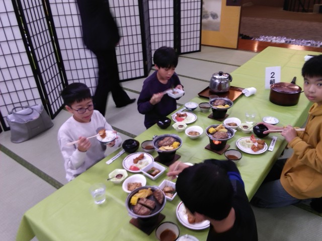 夕食がスタート!奈良公園でたくさん歩いて、お腹はペコペコ…。たくさん食べるぞ〜!