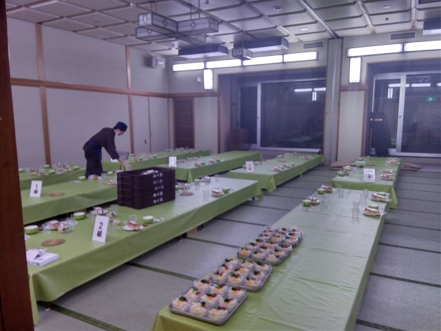 おはようございます。起床時刻となりました。てるてる坊主のおかげもあって、今日は一日、晴天のようです!食事会時を見ると、すでに朝食の準備が…。感謝ですね!