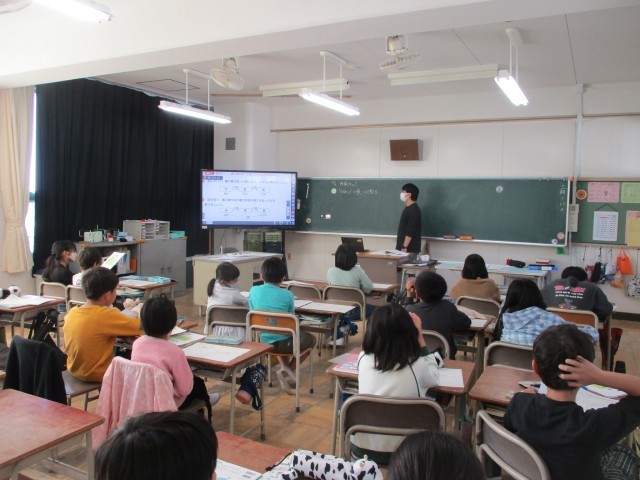 3年生の算数の授業の様子です。もとにする大きさの何倍になるかを求めてから、答えを出す方法を考えました。