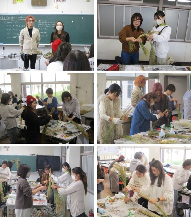 本日、PTA文化教室「しめ縄リースづくり」が開催されました。参加いただいたみなさんがは笑顔でしめ縄リースづくりを楽しんでみえました。企画・準備をしてくださいました文化委員のみなさま、そして、2年連続で講師をお務めくださった「ROSE FACTORY」田中様に心より感謝申し上げます。本当にありがとうございました。