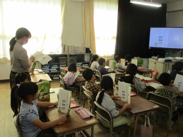 1年生の国語の授業の様子です。自動車について書かれている説明文について勉強をしました。