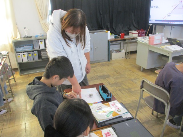 6年生の算数の授業の様子です。拡大図の作図を練習しています。