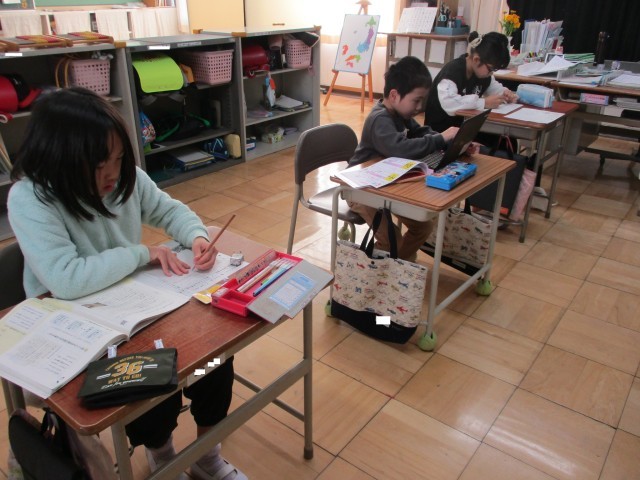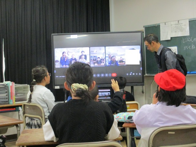 ふれあい 今日の一場面 11/19 公開日 2025/11/20 更新日 2025/11/19 ふれあいの部屋 1枚目・・・明日の小中交流会に向けて、オンラインで顔合わせをしています。2枚目・・・国語の授業中です。それぞれのめあてに向かってがんばっています。